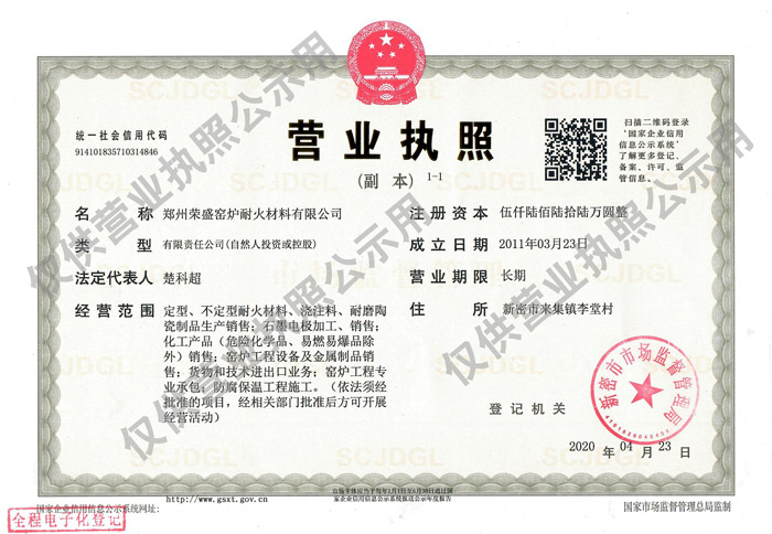 ©2021 鄭州榮盛窯爐耐火材料有限公司 版權(quán)所有 豫ICP備13012392號-2 營業(yè)執(zhí)照公示